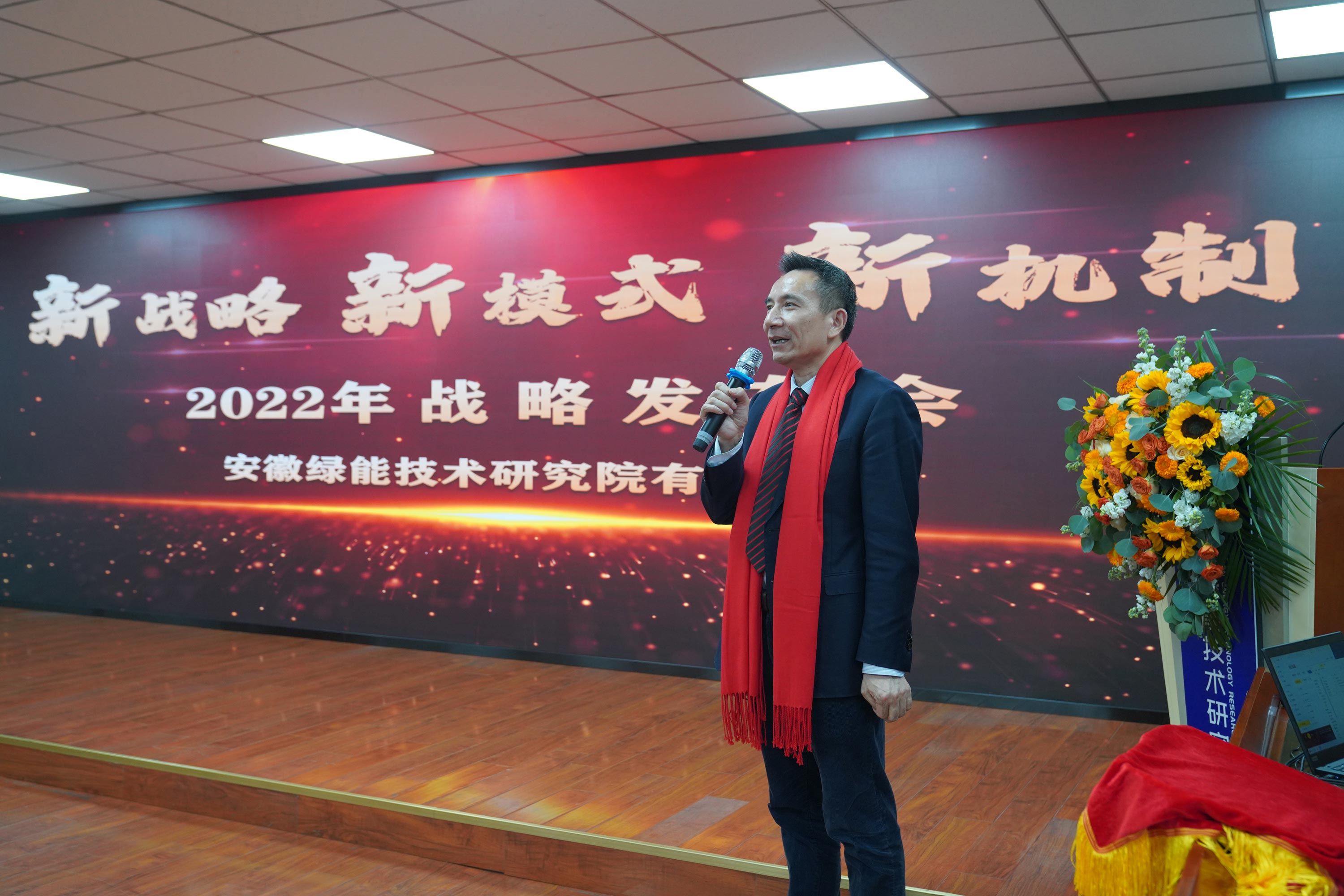 2022年1月26日,安徽綠能技術(shù)研究院有限公司(簡稱“綠能院”)戰(zhàn)略發(fā)布會成功召開。本次發(fā)布會以“新戰(zhàn)略 新模式 新機(jī)制”為主題,特邀安徽工業(yè)經(jīng)濟(jì)聯(lián)合會張德山會長、伯樂大學(xué)張少華校長、安徽工程大學(xué)俞葵教授及綠能院全體員工參加本次發(fā)布會。